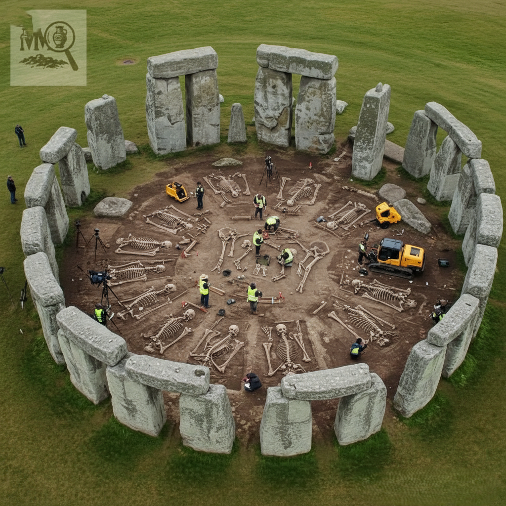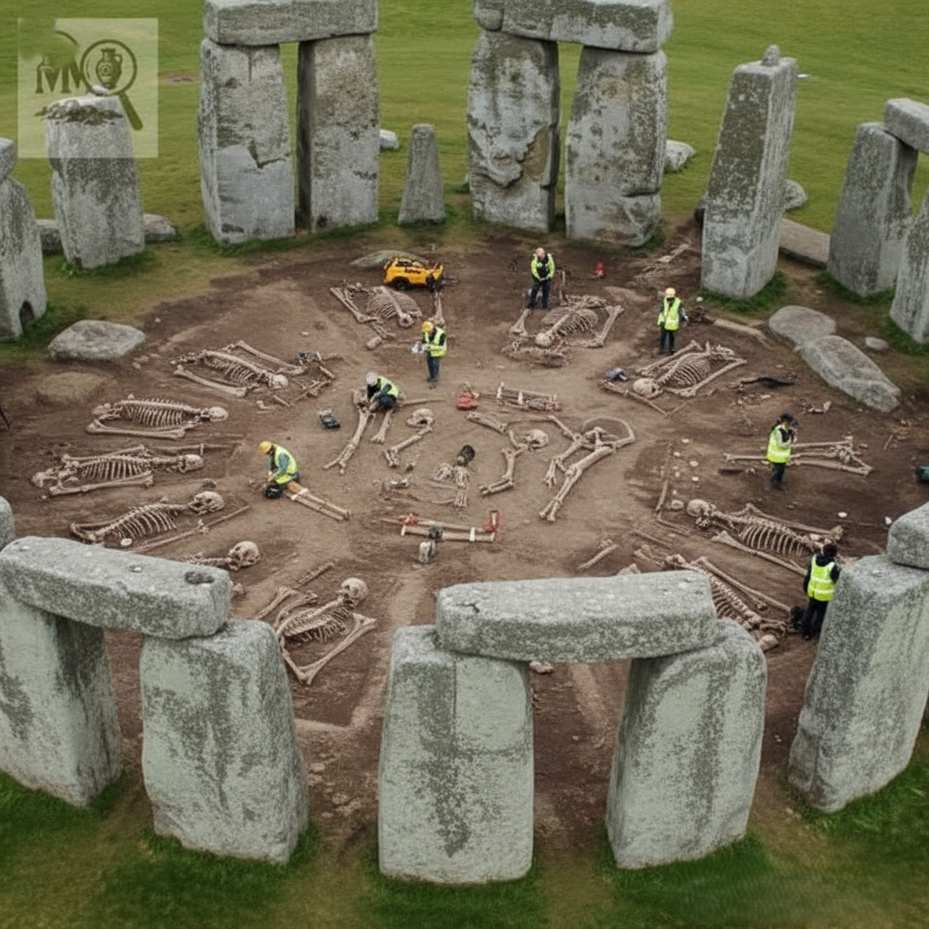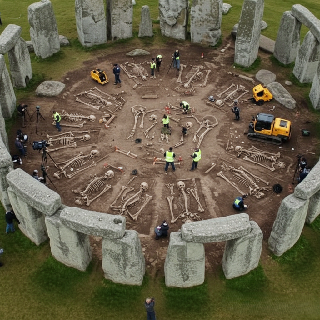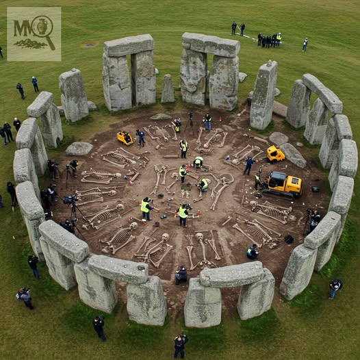 For centuries, Stonehenge has baffled historians, astronomers, and mystics alike. But now, a shocking new discovery threatens to change everything we thought we knew. Archaeologists excavating beneath the ancient stone circle have uncovered a mass grave of colossal skeletons, each arranged in meticulous alignment that mirrors the layout of the stones above.