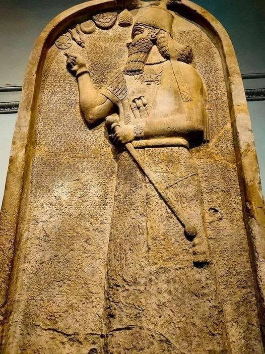 The stela is intricately adorned with symbolic motifs, including winged figures and ritualistic patterns, which are widely interpreted as expressions of the king’s divine right to rule and his supreme sovereignty.