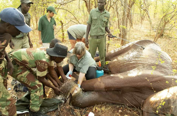 In the vast and unforgiving quiet of the Zimbabwe wilderness, a mother elephant named Martha was staggering through the bush, every movement a testament to agonizing pain. A poacher’s snare, a seemingly simple coil of wire, had wrapped itself tightly around her leg. With each step, it cut deeper, slicing into her flesh until deadly infection began to spread into her massive body. Martha, once a symbol of majesty and strength, was now crippled and trembling.