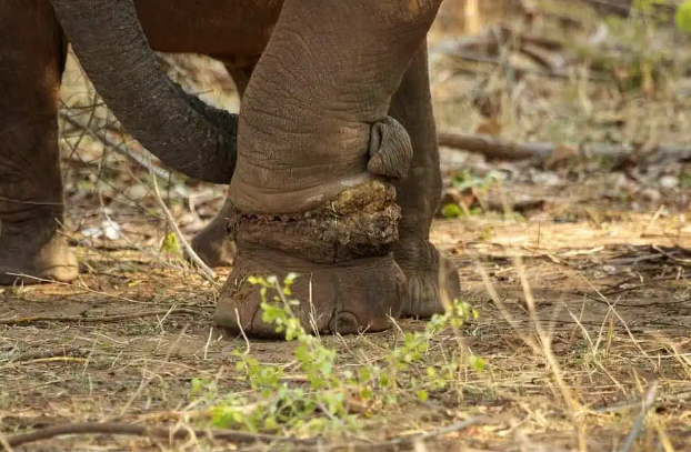 In the vast and unforgiving quiet of the Zimbabwe wilderness, a mother elephant named Martha was staggering through the bush, every movement a testament to agonizing pain. A poacher’s snare, a seemingly simple coil of wire, had wrapped itself tightly around her leg. With each step, it cut deeper, slicing into her flesh until deadly infection began to spread into her massive body. Martha, once a symbol of majesty and strength, was now crippled and trembling.