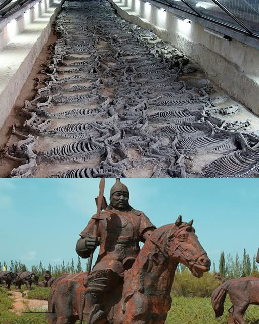 In the vast, unforgiving silence of Mongolia’s Khentii province—a region where history itself seems to slumber—a road construction crew inadvertently awakened one of humanity’s deepest historical enigmas. While laying pavement, their machinery struck stone. Beneath the dirt, a sealed burial chamber was unearthed. The 800-year silence was broken, revealing what lay within: dozens of human skeletons, testifying to a massive sacrifice, alongside even more horse remains, symbolizing the Mongol’s unmatched cavalry power.