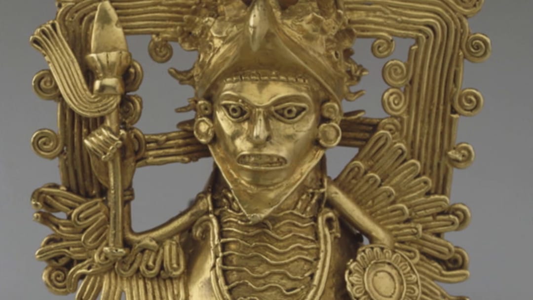 Eagle Warriors were members of a prestigious military order dedicated to the sun god Huitzilopochtli, symbolizing the connection between warfare, sacrifice, and the solar cycle. The bell shape of the pendant suggests it may have produced sound during ritual movement, enhancing its sacred function. Both a jewel and a spiritual emblem, this gold pendant reflects the Aztecs’ mastery of metallurgy and their deep reverence for warriors who fought to sustain the gods and the universe through battle and ritual sacrifice.