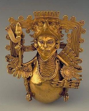 Eagle Warriors were members of a prestigious military order dedicated to the sun god Huitzilopochtli, symbolizing the connection between warfare, sacrifice, and the solar cycle. The bell shape of the pendant suggests it may have produced sound during ritual movement, enhancing its sacred function. Both a jewel and a spiritual emblem, this gold pendant reflects the Aztecs’ mastery of metallurgy and their deep reverence for warriors who fought to sustain the gods and the universe through battle and ritual sacrifice.