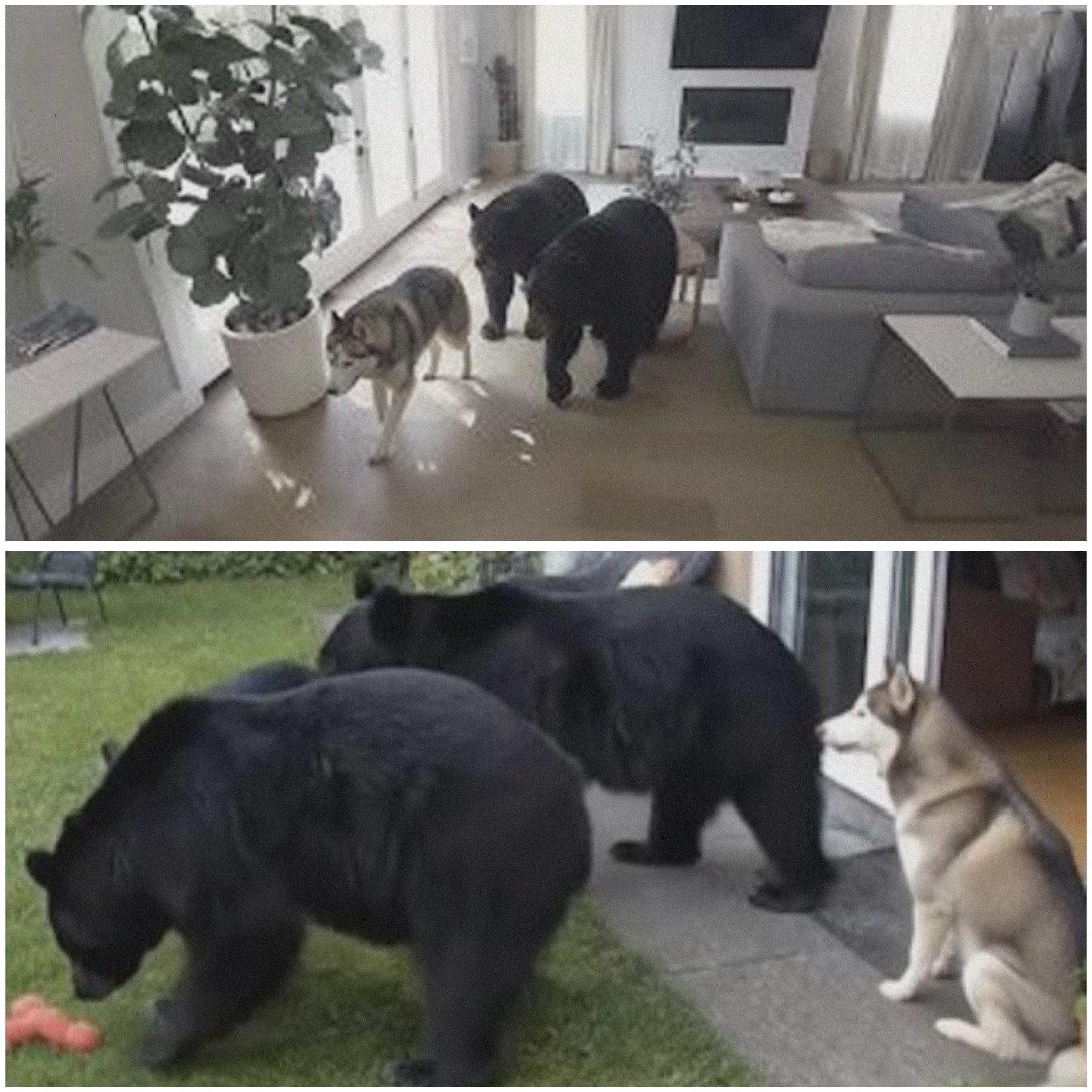 The Husky’s Playdate: Dog Invites Bears Right Through the House