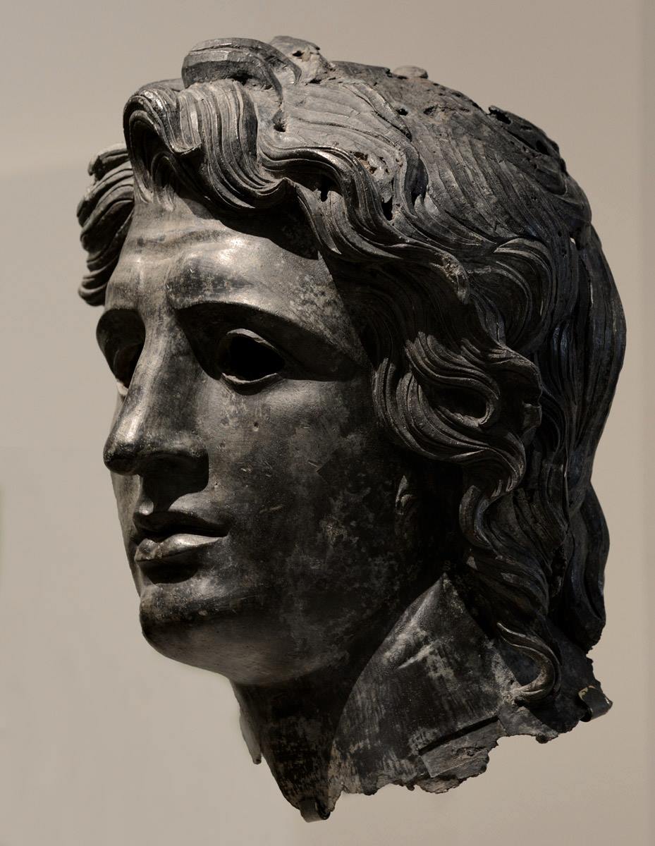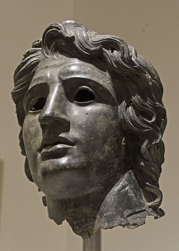 A bronze head of Alexander the Great , dating to approximately 150 BCE–138 CE, from either the late Hellenistic or Roman period / . This finely modeled portrait captures the iconic features of the legendary conqueror and is now part of a private collection.