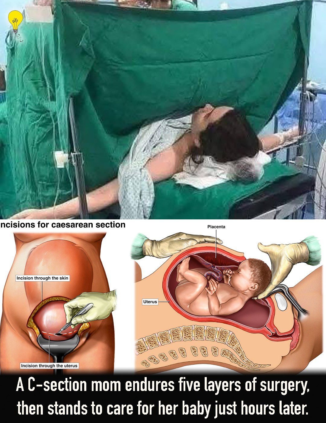 Even as her body grapples with the pain of a fresh surgical wound, it continues its profound, instinctual work. The uterus begins contracting to heal itself, a process often felt as intense afterpains. A surge of oxytocin, the “love hormone,” floods her system, forging an instant, unbreakable bond with her new baby, even amidst discomfort. Simultaneously, her breasts begin the intricate process of milk production, ready to nourish the infant nestled against her skin. All of this unfolds while she battles surgical pain, the lingering effects of medication, and the profound exhaustion of childbirth itself.