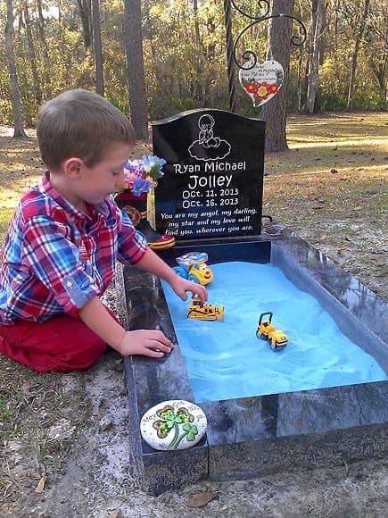 The corner of Willow Creek Cemetery is unlike the rest. It is a small, quiet patch where the grass is kept short and the headstone is marked with a simple, engraved teddy bear. But what truly sets it apart is the play area surrounding the marker—a place meticulously covered in soft, pale blue sand, designed by grieving parents to resemble a tiny, tranquil lake.