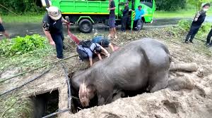 During the height of the monsoon rains, a mother elephant and her calf became trapped in a deep pit as floodwaters rose rapidly around them. The mother, though exhausted and terrified, stood her ground, shielding her baby with her massive body, refusing to let the water or fear overcome them.