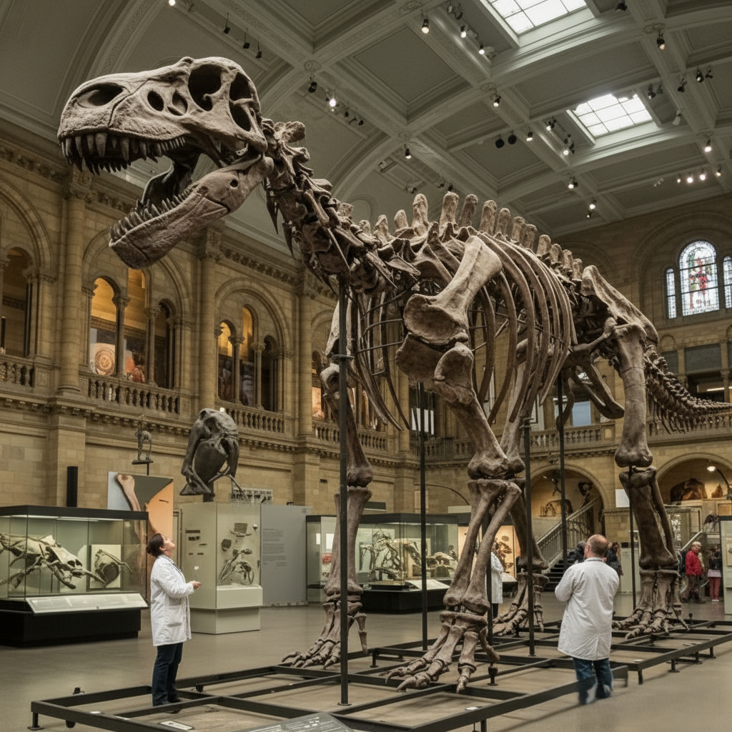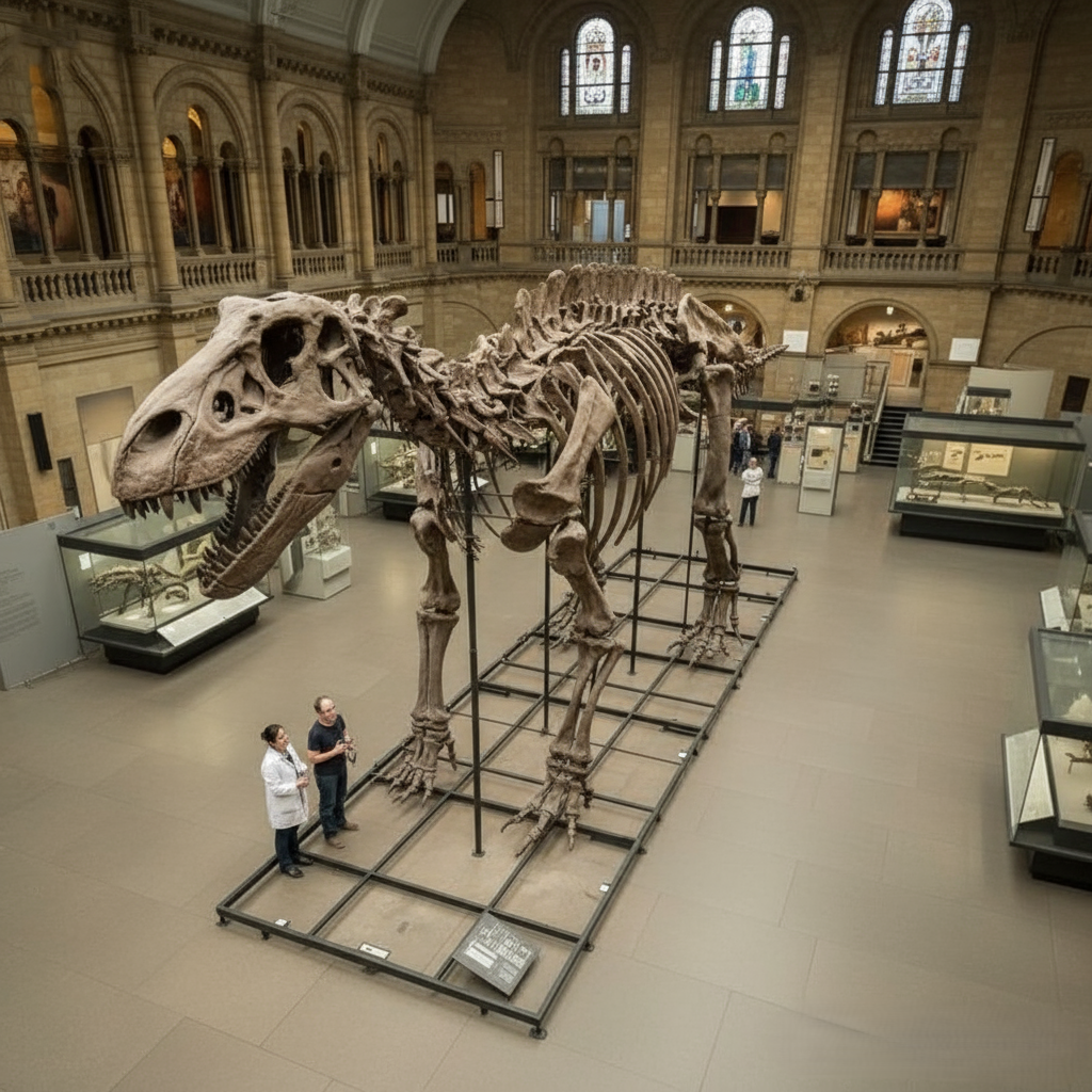 Inside one of the world’s most prestigious natural history museums stands a towering skeleton that has captured the imagination of millions. Its sheer size is breathtaking — ribs arching like cathedral beams, vertebrae the size of boulders, and a skull so massive that visitors instinctively lower their voices in its presence. To the public, it’s labeled as an undiscovered species of prehistoric giant reptile, a new branch on the dinosaur family tree. But behind the closed doors of academia, whispers grow louder each day: something about this specimen doesn’t add up.