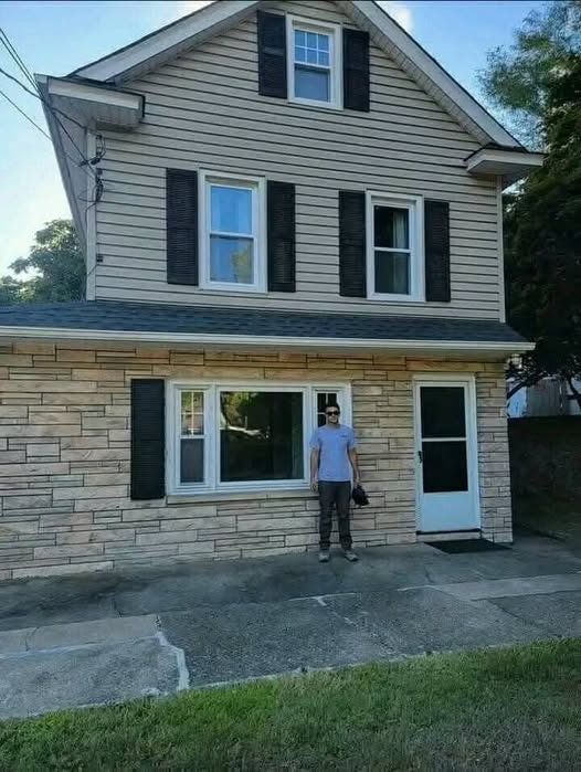 This is my 20-year-old son standing in front of his two-family house that he just bought.