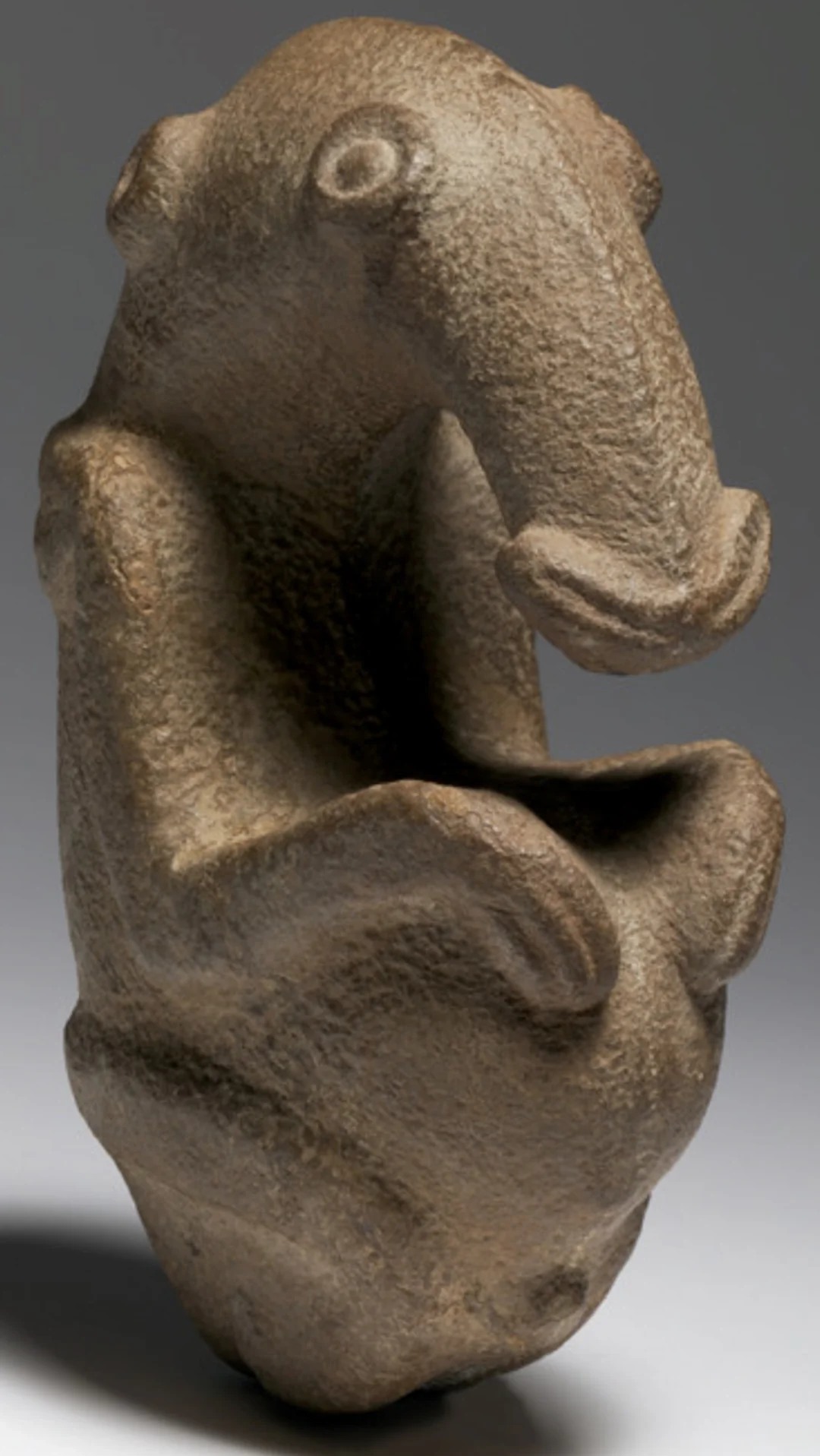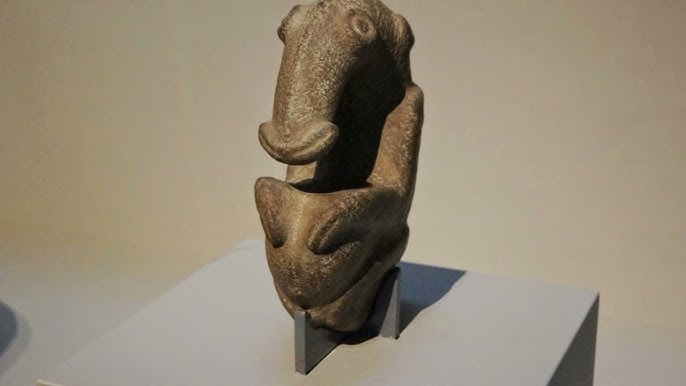 Carved from greywacke stone, the figure’s exact subject remains a mystery, though it is often thought to represent a baby echidna (spiny anteater)  .