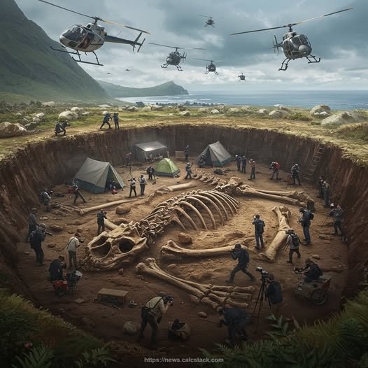 An otherwise routine coastal excavation has spiraled into a full-blown international mystery after archaeologists unearthed what appears to be the colossal remains of a humanoid giant, buried deep beneath layers of sediment near a remote shoreline. Within mere hours of the discovery, the once-isolated site was overrun by military helicopters, armed personnel, and unmarked vehicles, triggering global speculation about what authorities are trying to conceal.