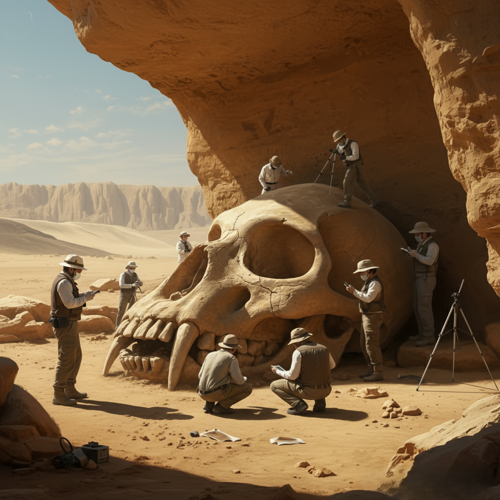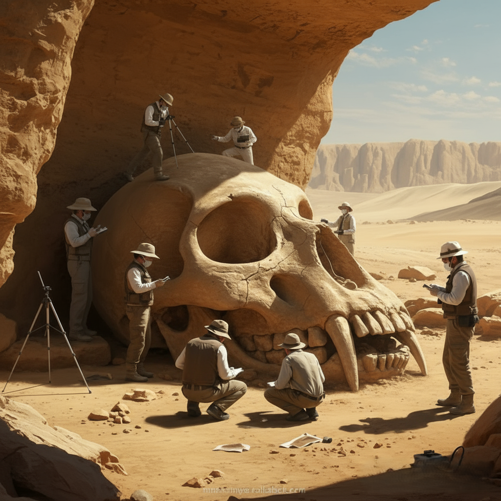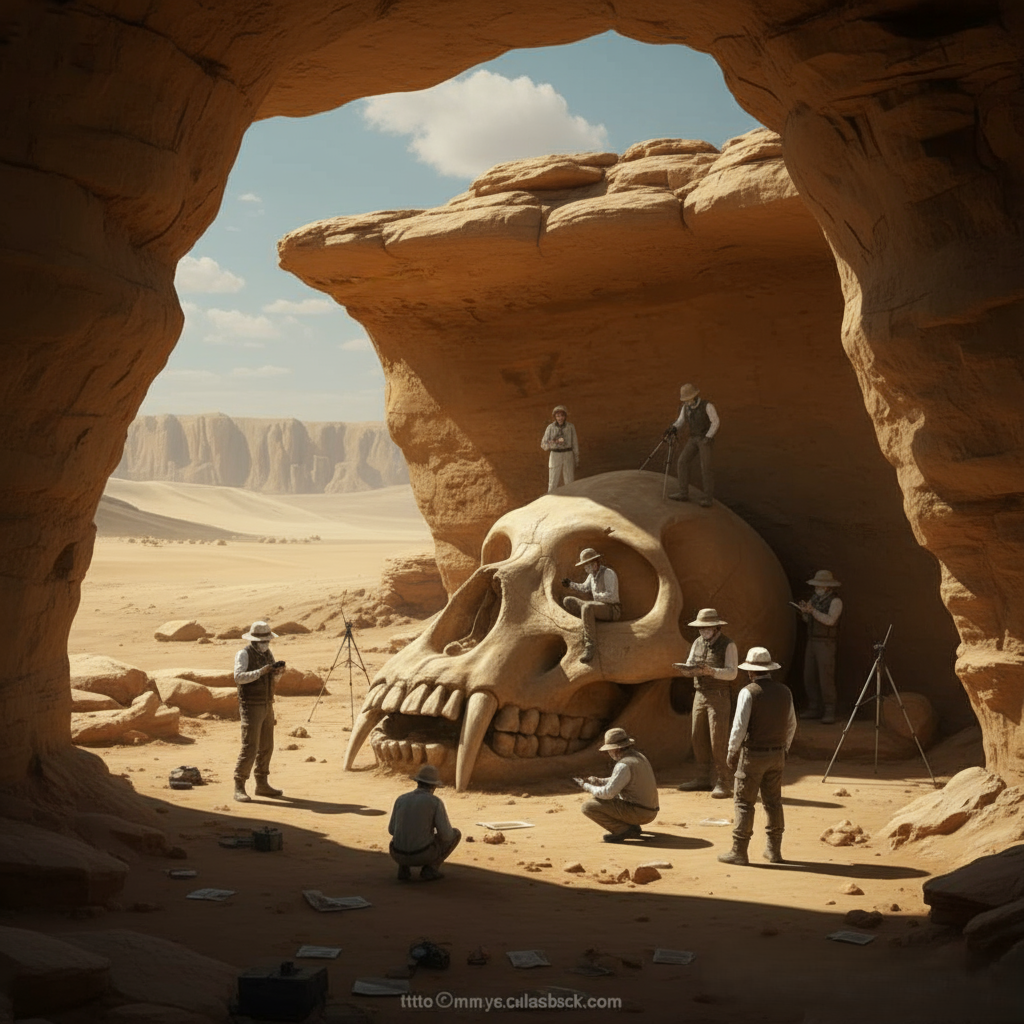 🚨BREAKING DISCOVERY: Gigantic Skull Unearthed in Desert Cave Stuns Archaeologists! 💀🌍