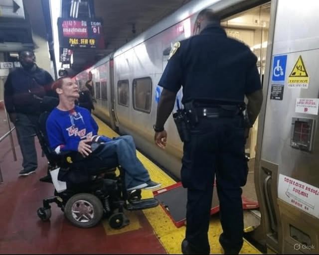 Chris, who relies on a 350-pound power wheelchair, suddenly had no way to reach the train level. We stood there, facing what felt like an impossible situation, as the city rushed past us.