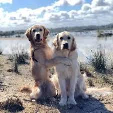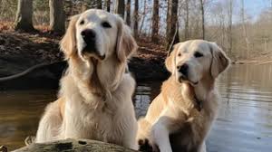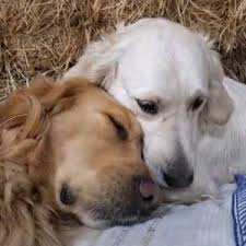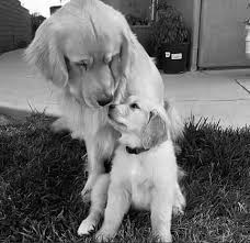In the fading glow of sunset, an old golden retriever named Cooper sat in the tall grass, his fur touched with silver and his breath slow but content. Between his paws, his little pup, Bailey, nestled close — safe, warm, and blissfully unaware of the weight in the air. The world around them had gone still, wrapped in that quiet kind of peace that holds both love and goodbye in its silence.
