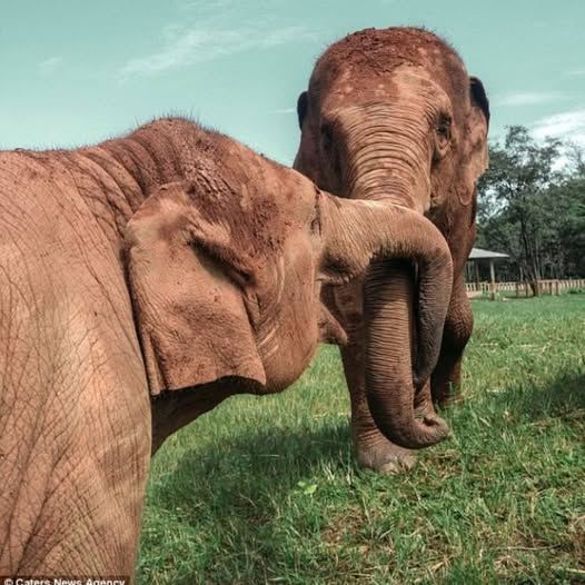 Today, Boonme and Buabaan are no longer defined by their years in captivity. Instead, they live in open spaces, surrounded by other elephants, grasslands, and gentle care. Observers describe them rediscovering natural behaviors—walking freely, socializing, playing, and even expressing joy through trumpets and affectionate touches.