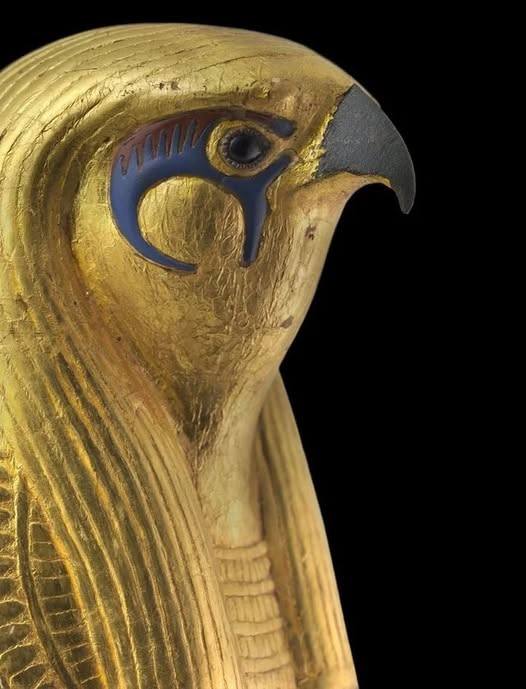This plastered and gilded wooden statue represents Harwer (Horus the Elder), the patron god of kingship. The figure is richly decorated with inlays of obsidian, colored glass paste, and bronze. It was discovered in the tomb of King Tutankhamun, who reigned circa 1336–1327 BCE during the 18th Dynasty. Catalogued as GEM 91 (formerly JE 60746), the piece is currently preserved in the Wood Laboratory at the Conservation Center of the Grand Egyptian Museum, Giza, Egypt. Photo: Sandro Vannini.