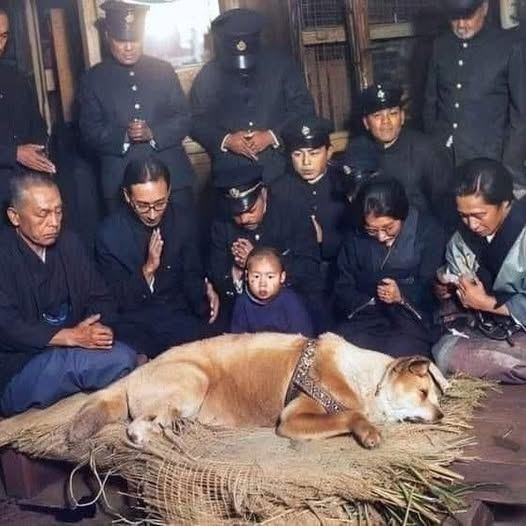 The final photograph taken of Hachiko in 1935 shows the aging dog surrounded by mourners, moments before his death. Frail but dignified, he had waited until the very end. When news of his passing broke, grief swept across Japan. Thousands came to honor him, and newspapers across the globe carried his story.