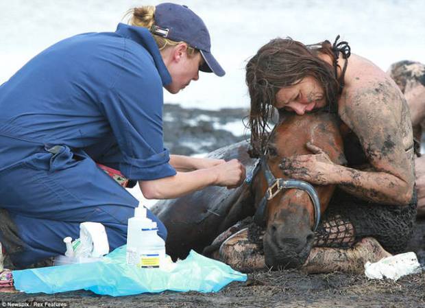 In Geelong, Australia, a woman named Nicole Graham showed the world what true devotion looks like. While riding along the shoreline with her daughter, her beloved horse Astro became trapped in a treacherous mudflat. With every passing minute, the soft ground pulled him deeper, and the rising tide threatened to claim his life.