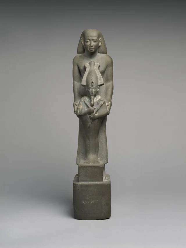 Determined to restore him, Isis—possessing great magical power—set out with Nephthys to recover Osiris’s body parts. Together they reassembled him, binding his remains with linen wrappings. With her magic, Isis breathed life back into him, reviving him long enough for them to be reunited. From this union, Isis miraculously conceived a son: Horus.