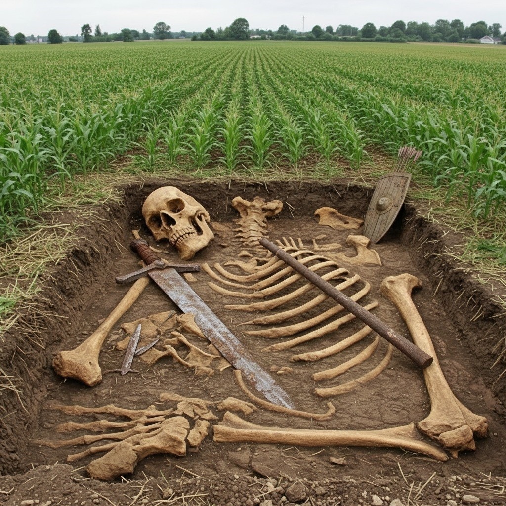 Europe’s landscapes are rich with history, but sometimes a discovery emerges that defies all conventional timelines. In the quiet farmlands of Schleswig-Holstein, Germany, archaeologists have reportedly uncovered a skeleton of colossal proportions. Buried beneath a cornfield, the remains challenge our understanding of European prehistory and ignite debate about whether ancient myths of giants may hold kernels of truth.