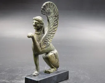 Bronze Statuette of a Sphinx on a Wooden Standard