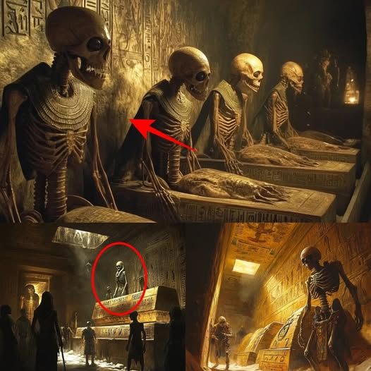 Reports describe a hidden chamber deep within the Egyptian sands, containing skeletal remains that challenge all known classifications. Unlike traditional mummies or human fossils, these figures bear features often associated with extraterrestrial imagery—elongated craniums, unusually thin bones, and proportions that defy conventional anatomy. For many, the immediate comparison is striking: could these skeletons represent the “gods from the stars” referenced in ancient myths and hieroglyphs?
