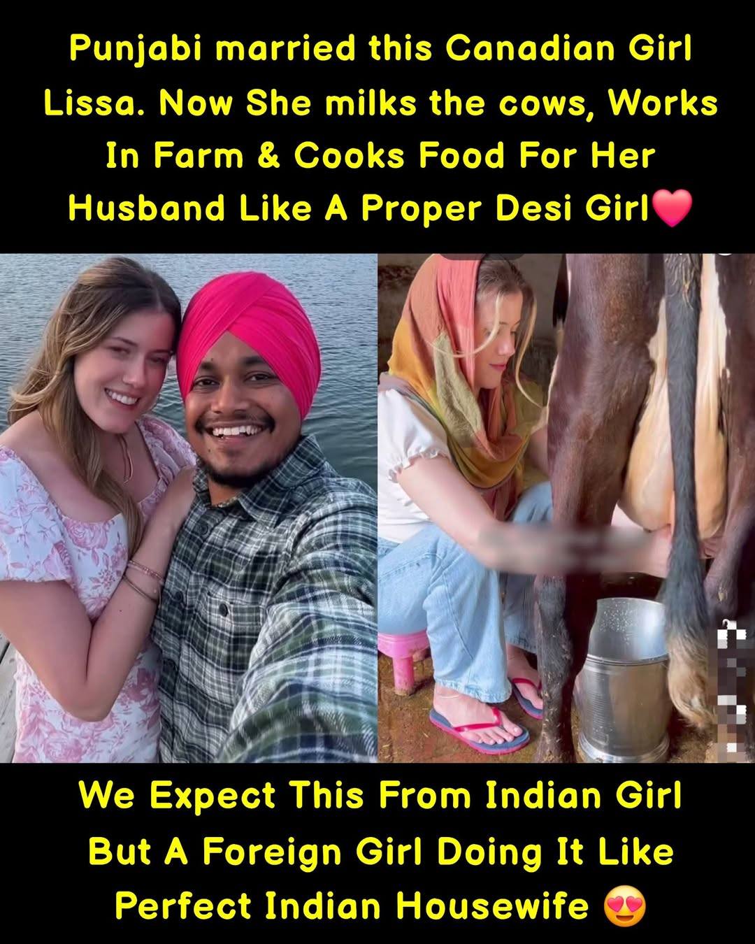 From the moment she said “I do,” Lissa didn’t just join a family; she joined a way of life. She shed the modern expectations of a Western bride and dove headfirst into the simple, demanding, and beautiful world of Punjabi life. She wakes up with the sun, not for a morning jog, but to help her husband on the farm. She learned to milk cows, her hands, once unfamiliar with farm work, now moving with a practiced ease that would impress any seasoned farmer.