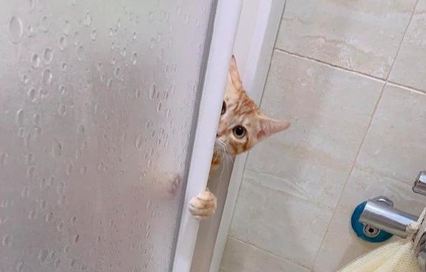 And yet, when I slide open the door and step out, he is right thereโpurring, brushing against my legs, claiming me once more as his. I swear one day heโll try to join me, and when that day comes, Iโll be ready with a miniature towel and a tiny bottle of cat shampoo.