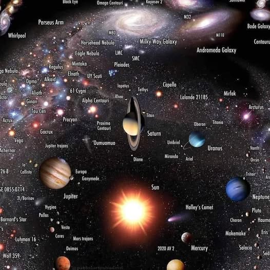 This remarkable cosmic map offers a breathtaking perspective of our place in the universe, beginning with the familiar boundaries of our solar system and stretching outward into the Milky Way galaxy and beyond.
