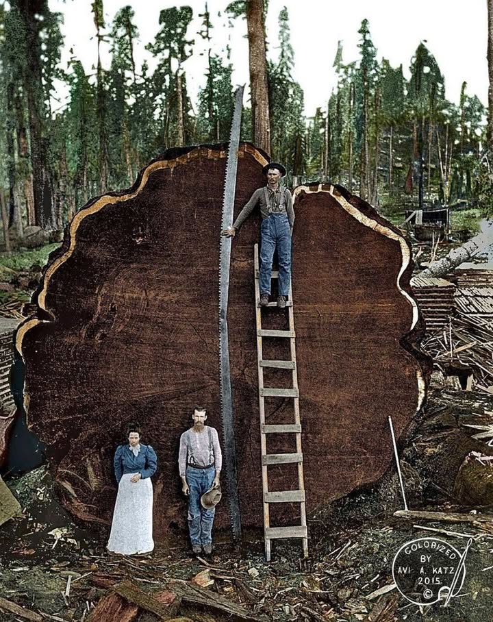 The tough men of timber: Black and white photos capture the arduous lives of 1800s lumberjacks who felled enormous trees using only hand tools and brute strength