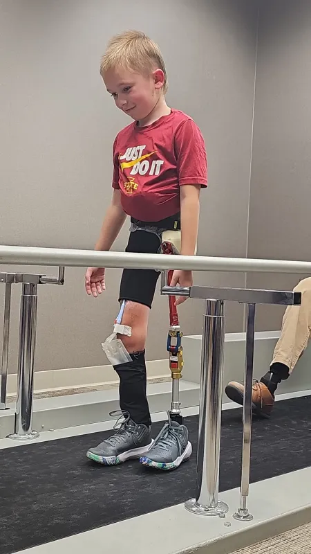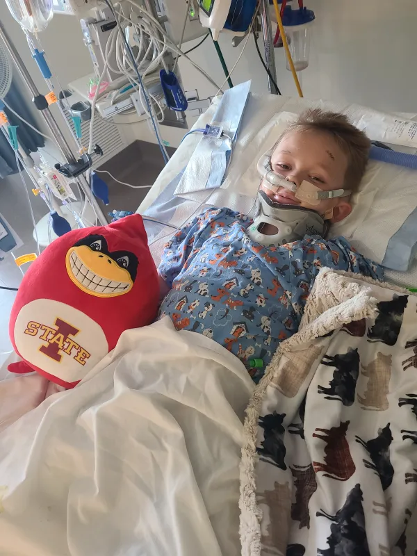 Nolan was airlifted first to a nearby hospital, then transferred to University of Iowa Stead Family Children’s Hospital. What followed was a 15-hour surgery unlike anything his family could have imagined. His pelvis was shattered — fractured on the right side, crushed entirely on the left. His bladder and internal organs needed repair, his body held together by hope and the skilled hands of doctors.
