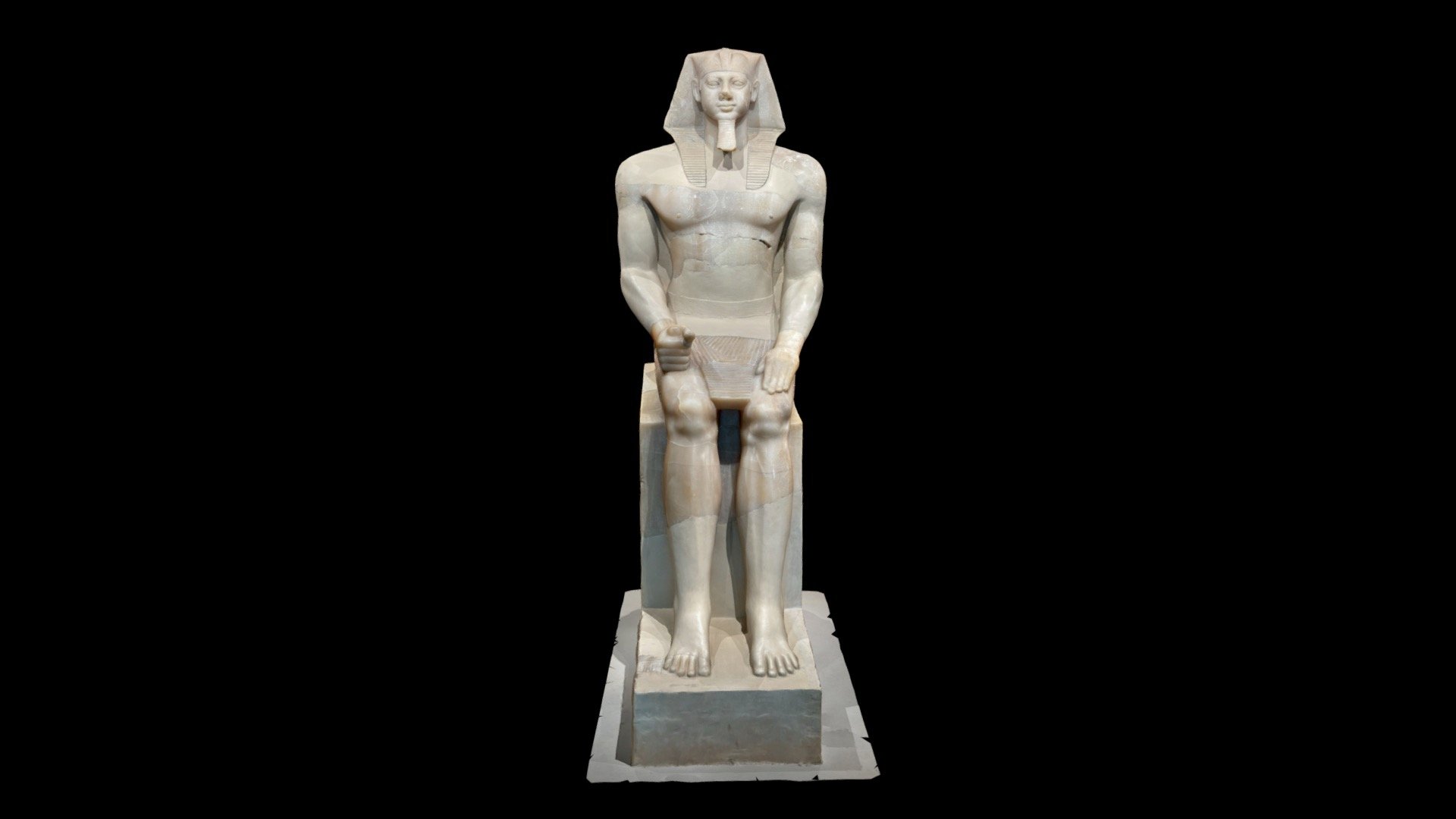 Originally, the statue stood in a deep niche at the back of Menkaura’s Pyramid Temple, at the base of the eastern face of his pyramid, until it was deliberately destroyed for unknown reasons. In January 1907, George Reisner recovered fragments of the shoulder and torso from a pit in the temple and a large section containing the hands, legs, and throne base from an adjacent corridor. Two months later, while excavating a nearby robber’s trench, Reisner discovered the head nearly intact.