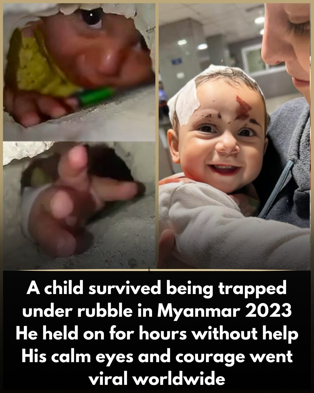 Myanmar – In the wake of a devastating earthquake that tore through Myanmar, a single, compelling image has emerged to capture the profound resilience of the human spirit. The photograph of a young, unnamed child, trapped under tons of rubble but peering out with eyes full of calm determination, has gone viral, turning him into a global symbol of courage.