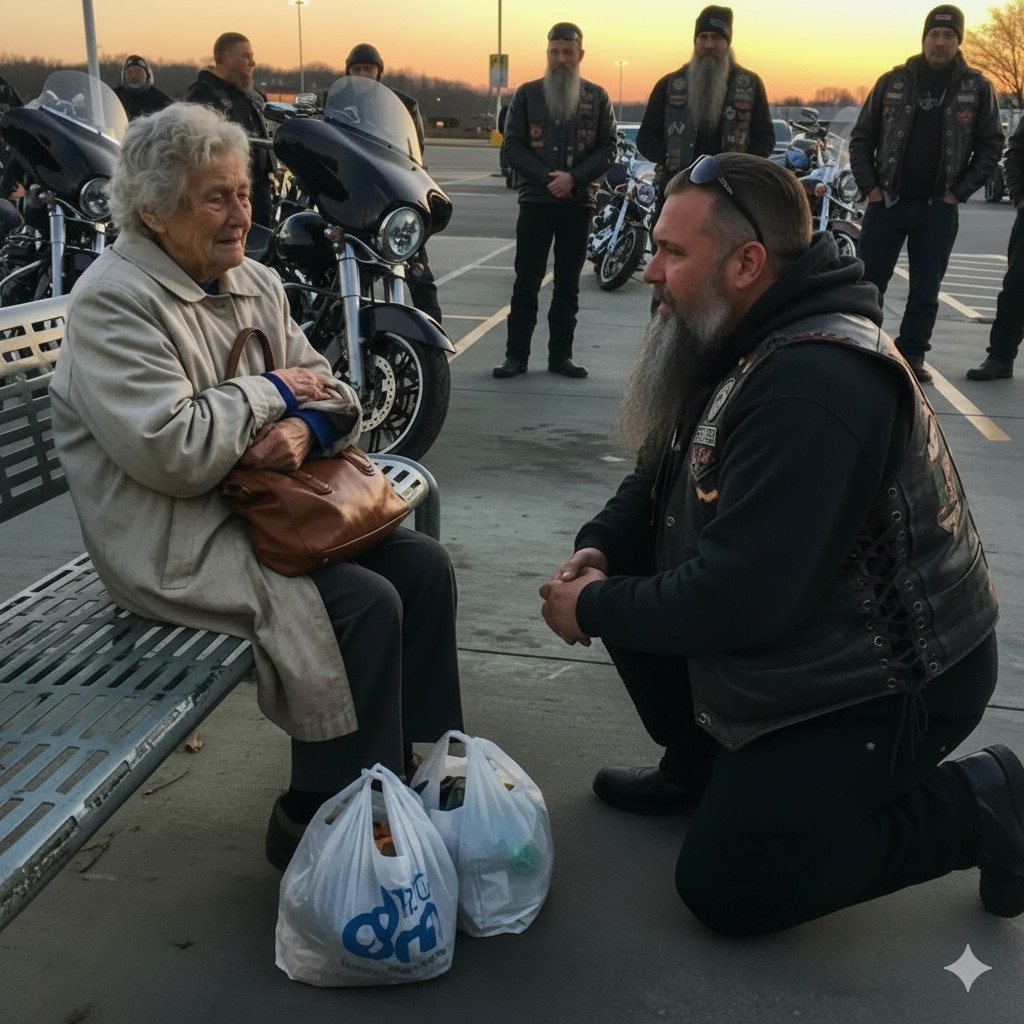 💙 Then came the rumble of motorcycles. The Savage Angels MC pulled up, led by a bearded giant named Bear. But instead of chaos, they brought compassion. Bear knelt beside her and softly explained: years ago, her late husband had pulled him from the edge of ruin. Now, it was his turn to honor that debt.