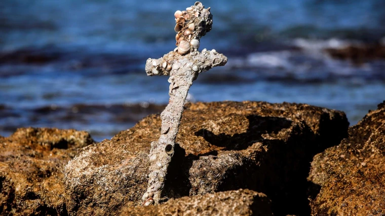 Measuring nearly three feet in length and forged of iron, the sword bore the weight of history beneath a hardened crust of shells and marine life. Experts believe it once belonged to a medieval knight, a reminder of the Crusades — the turbulent campaigns fought between the 11th and 13th centuries for control of the Holy Land.