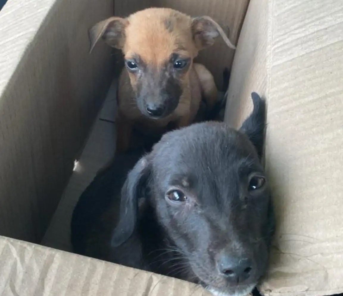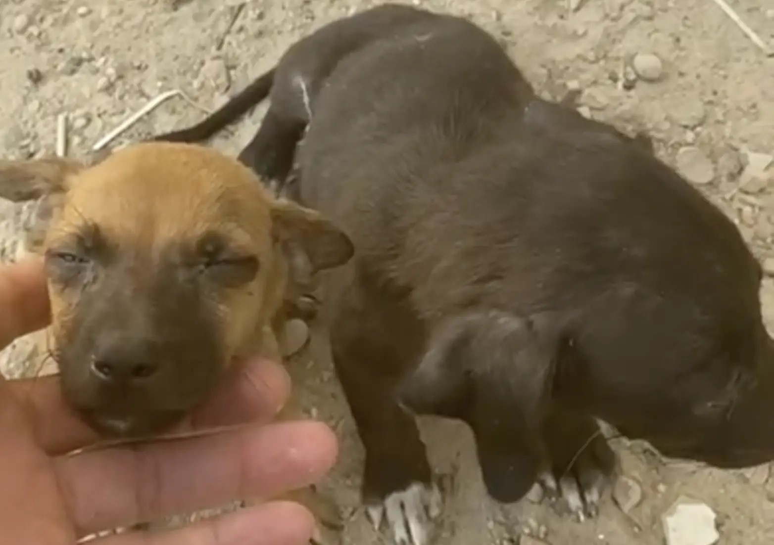 Two tiny puppies were found abandoned beside a dumpster, their fragile bodies curled among scraps of paper and broken glass. Too weak to cry, too hungry to move, they lay in silence—waiting for a kindness that almost never came. The ground was their bed, the trash their blanket.