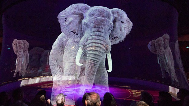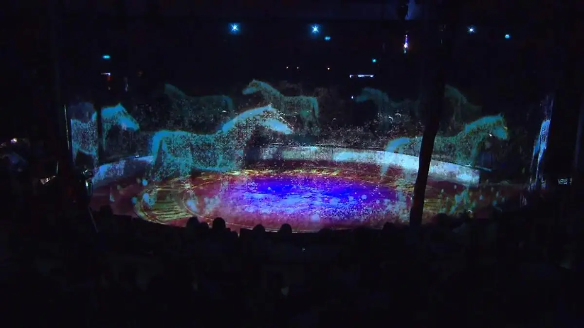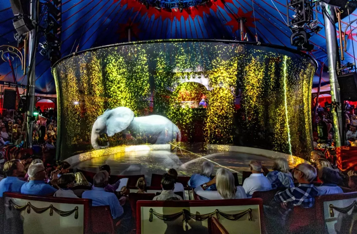 The company began phasing out wild animals decades ago and removed them entirely by 2018. In their place, 3D projections now fill the ring with elephants, horses, and other creatures performing choreographed sequences without the stress and suffering associated with captivity and transport.