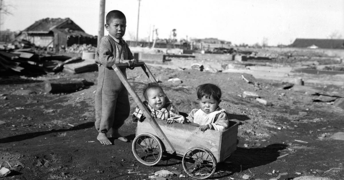 “I saw a boy about ten years old walking by. He was carrying a baby on his back. In those days in Japan, children often carried their little brothers or sisters, but this boy was different. He wore no shoes. His face was hard. The little head tipped back as if asleep.