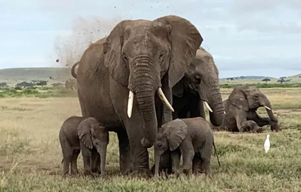 The savannah was quiet in the golden glow of dawn when the first cries shattered the silence. A mother elephant, surrounded by the safety of her herd, had just given birth—not to one calf, as is almost always the case, but to two. Rare twins.