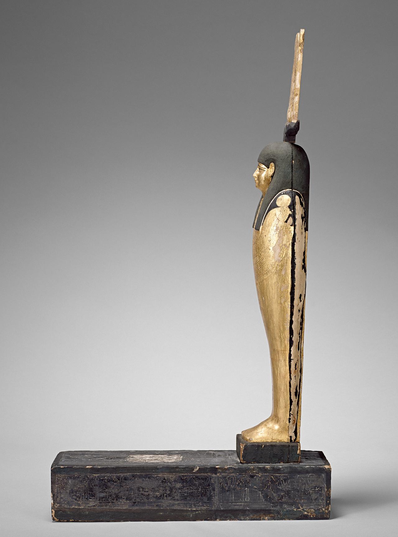 The wooden figure of Ptah-Sokar-Osiris in the National Gallery of Victoria represents the syncretic god of resurrection and was created for the burial of Hor, son of Djedher. Standing 89.5 cm high, the š®š¶š®š®šŖš§š°š³š® figure rests on a plinth secured to a solid base with a mortise-and-tenon joint.