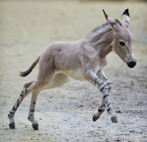 In the arid deserts and dry savannas of the Horn of Africa, one animal has learned to survive against the odds—the Somali wild ass. With its slim, graceful frame, large, dark eyes, and coat of sleek gray fur, it is a species of unparalleled beauty and resilience. Unlike domestic donkeys, the Somali wild ass possesses distinct features, including its white belly and the striking black-and-white horizontal stripes on its legs. These stripes are reminiscent of the wild ancestors of the donkey family, giving the animal a remarkable and elegant appearance that is a true marvel in the world of equids.