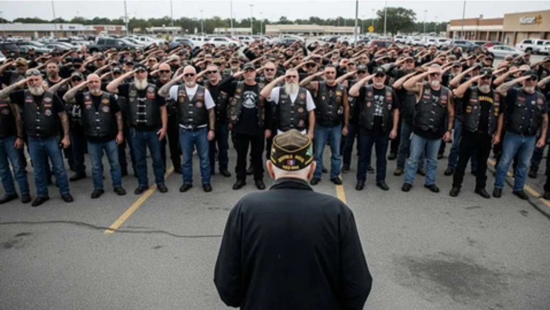 What Derek—the manager—didn’t know was that Hammer was no ordinary man. Decades earlier, he had built a brotherhood: the Road Warriors MC, a family of veterans and bikers bound by loyalty and respect. By the next morning, more than 300 bikes thundered into town, circling that Walmart like a wall of steel. Not a word. No shouting. Just presence, leather, and silence heavy enough to crush arrogance. 🛡️
