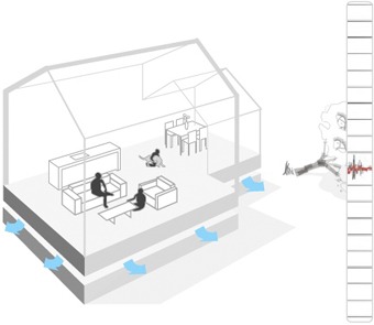 Under normal conditions, the house rests securely on a deflated airbag foundation. But when seismic sensors detect the first vibrations of an earthquake, the airbag rapidly inflates, lifting the structure several centimeters into the air. While the ground shakes violently beneath, the house remains suspended, avoiding the direct force of the tremor. Once the quake subsides, the airbag slowly deflates, allowing the home to settle back down gently onto its base.