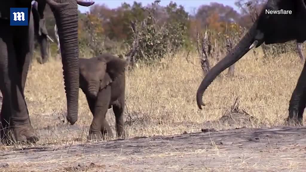 And yet, against the odds, the little elephant continues on. It moves step by step with its family, shielded within the circle of its herd. For now, their protection is its lifeline.