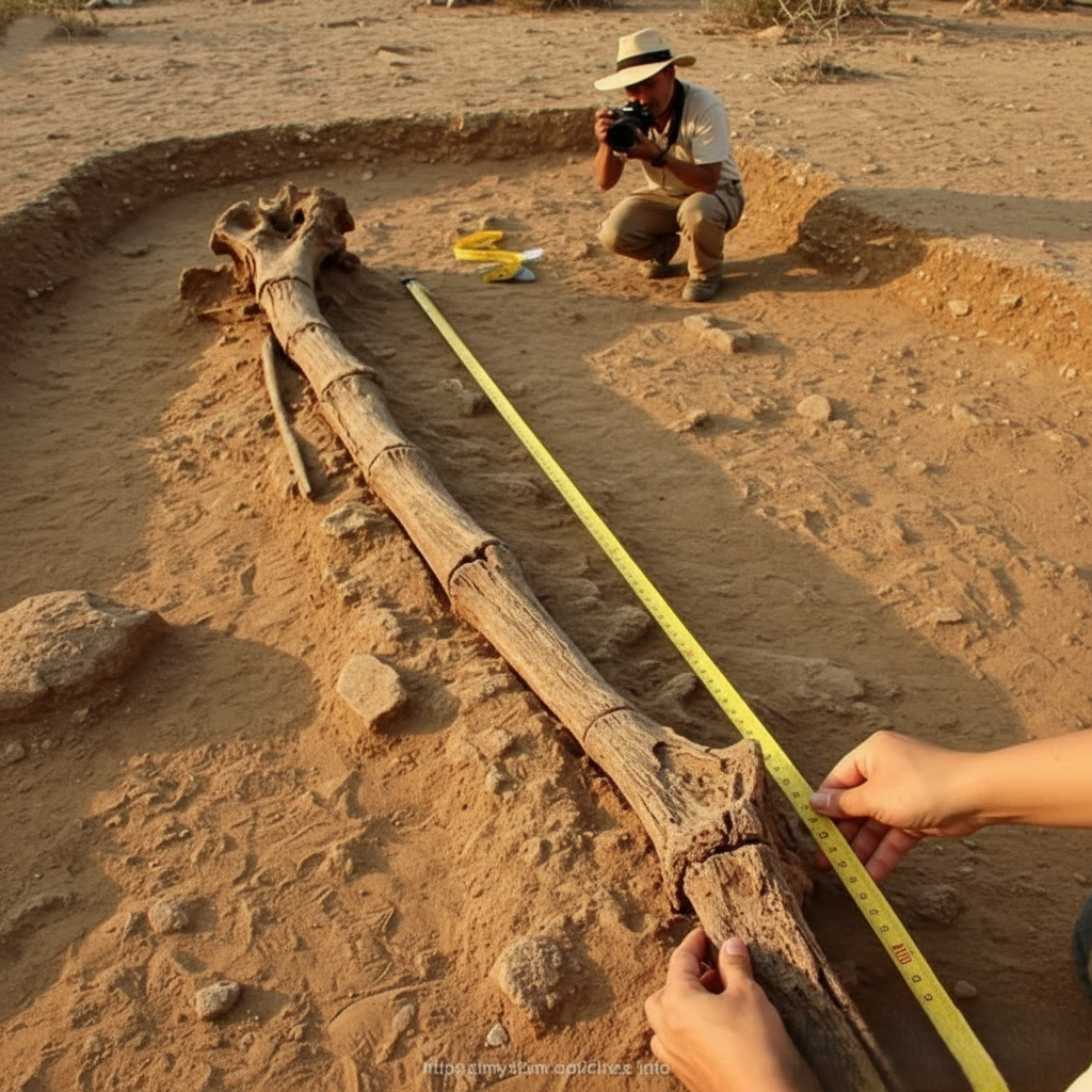 Archaeologists working in the heart of a barren desert landscape have stunned the world with the revelation of a colossal bone fragment, unearthed from layers of ancient sand and rock. Early images show a skeletal structure so immense that it dwarfs the scientists kneeling beside it, stretching longer than the height of an average human. The discovery has immediately ignited global debate—with some experts suggesting it could be the remains of a long-extinct species of megafauna, while others whisper about connections to ancient myths of giants and forgotten civilizations.