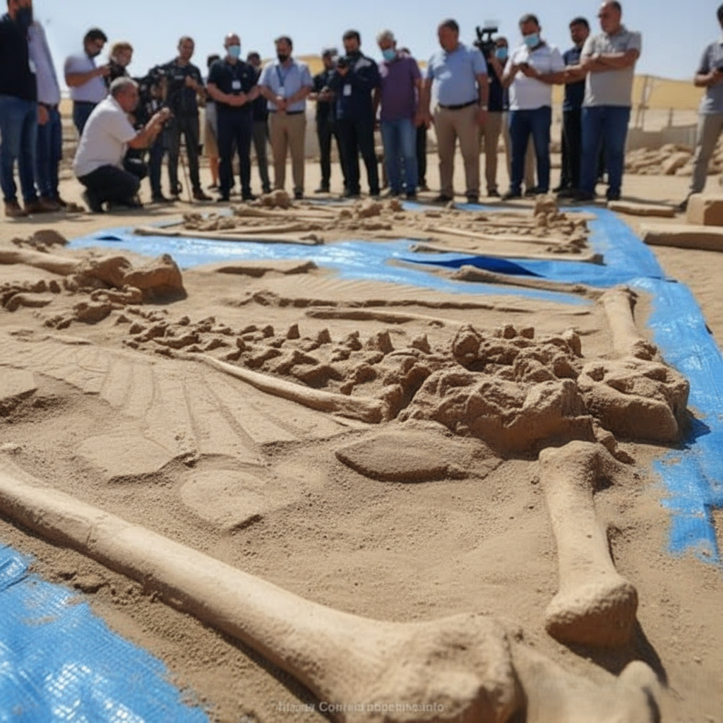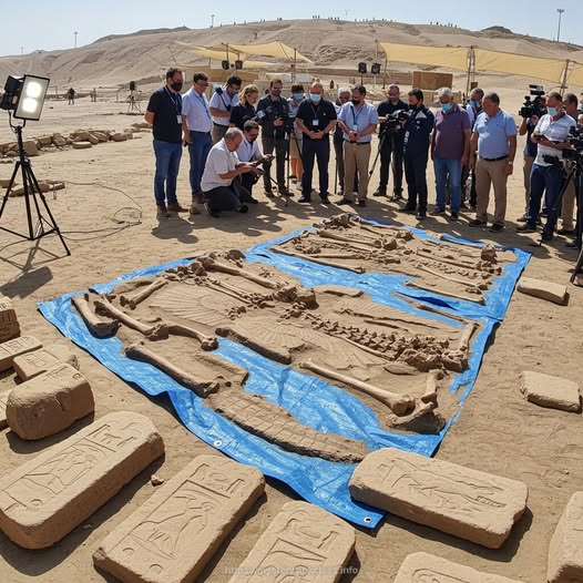 Archaeologists working deep in the desert have made a discovery so astonishing that it is already being hailed as one of the most controversial finds of the century. Buried beneath shifting sands, teams have uncovered enormous stone slabs carved with intricate figures, cryptic symbols, and what appear to be depictions of colossal humanoid skeletons etched in staggering detail. The sheer size of these carvings, some spanning several meters, has left experts reeling and the world buzzing with speculation.