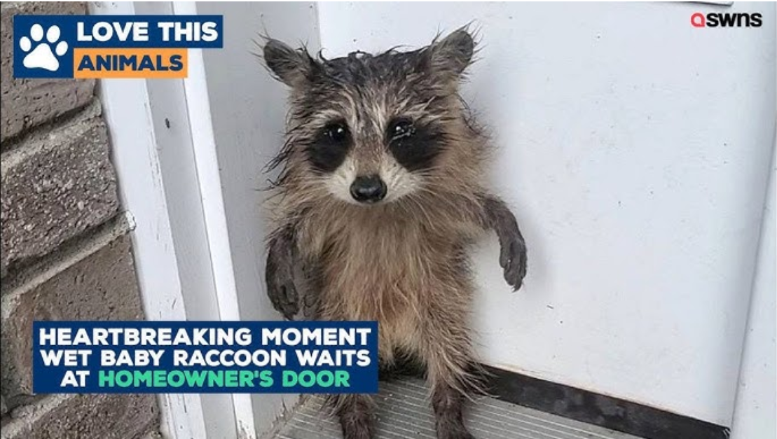 ๐ On a stormy evening, as the rain poured down and thunder echoed, a fragile baby raccoon found his way to a strangerโs doorstep. His fur was soaked through, his tiny paws muddy, and his frail body shook with exhaustion. Too young to survive on his own, he sat quietly, curling into himself for warmth, as if the cold night might swallow him whole.