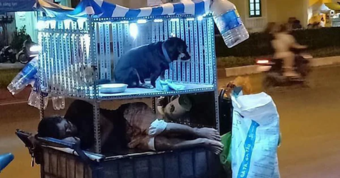 Despite owning almost nothing, he had given his companion a haven from the cold rain and biting wind. Inside that fragile little refuge was a warmth far greater than any house could offer: trust, loyalty, and a bond that spoke louder than words. Every piece of cardboard, every stitch of fabric, was an act of love. 💕