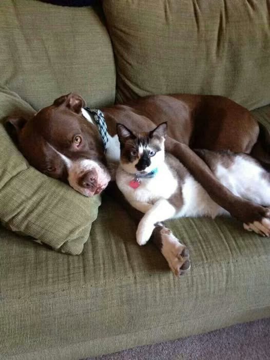 The greatest surprise, however, was still to come. In her new home, she was introduced to a potential companion—not another dog, but a cat. At first, their encounters were tentative: cautious stares from across the room, nervous sniffs, and long pauses filled with uncertainty. But then one quiet afternoon, the cat curled up beside her. The dog sighed, laid her head down, and for the first time since her ordeal, she felt safe.